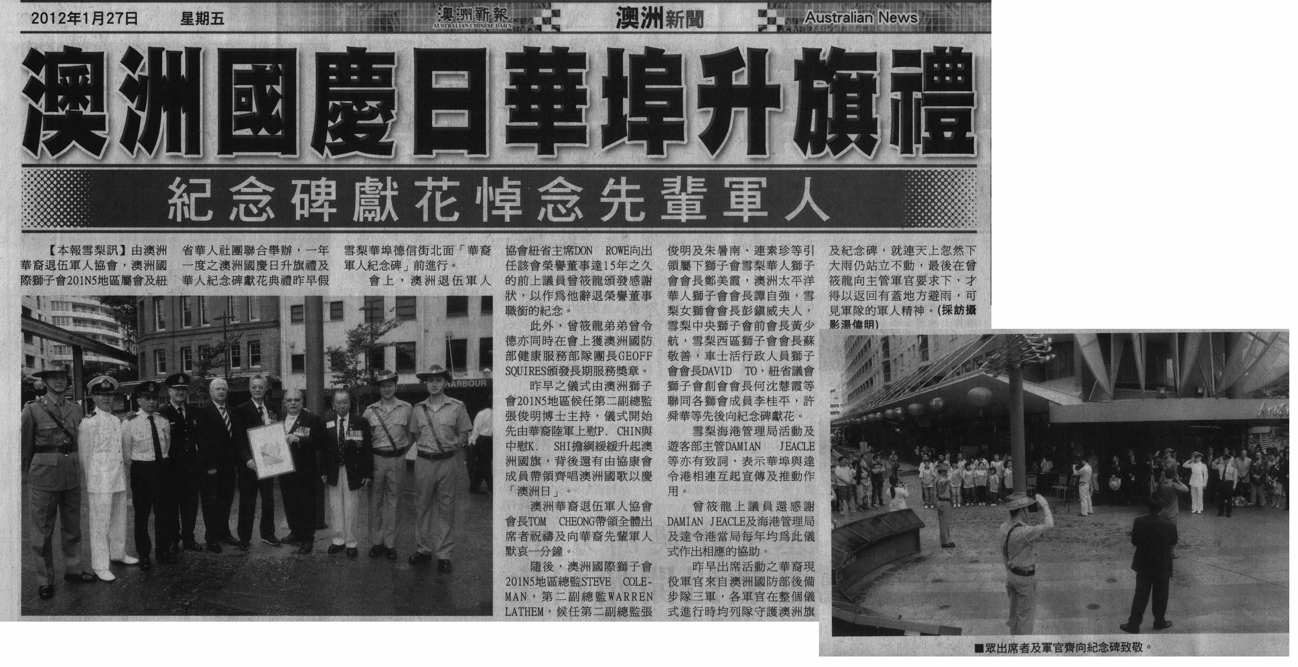 澳洲國慶日華埠升旗禮-紀念碑獻花悼念先輩軍人(澳洲新報)